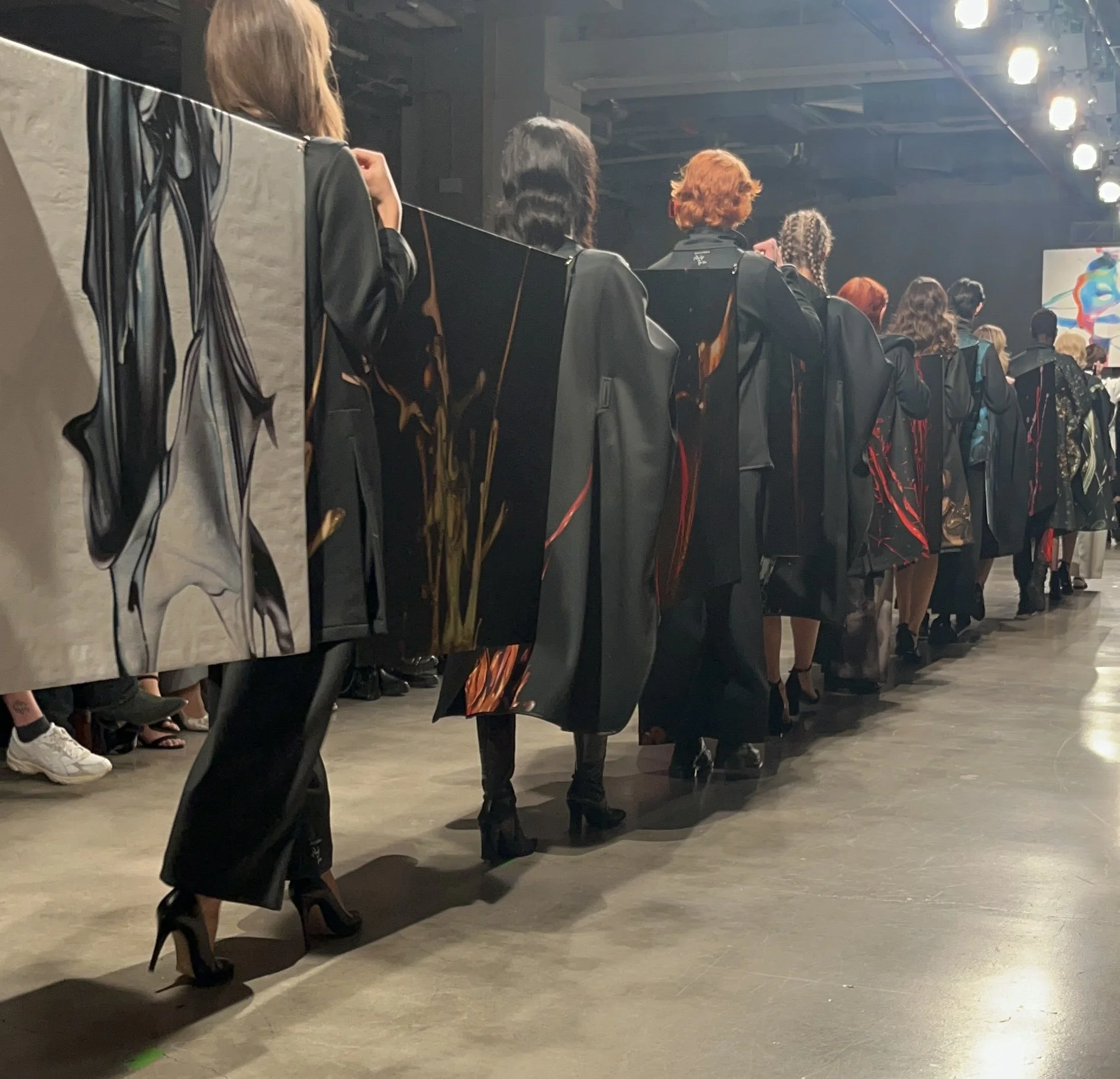 Hailing from Kyoto, Japan – /NAOKO TOSA’s “Sound of Ikebana” (生け花の音) Fall/Winter 2024 has taken the city by storm as the brand presented its exhilarating new collection at New York Fashion Week. According to the brand’s official press release, Tosa’s Sound of Ikebana Fall & Winter collection obtained inspiration from the shape of the heartbeat sound, Japanese Kimonos, and New York Manhattan downtown fashion!” Womenswear consists of a broad range of black cloaks including a one-piece dress and one-piece jacket. Menswear includes a turtle neck, wide pants, and a hooded coat. All of the fashion is easy to fit a plethora of bodies. Naoko Tosa is a new media artist and fashion designer whose activities are based in Kyoto and NY. Last year, she debuted as a fashion designer with Global Fashion Collective. Her original design was created by using sound vibration, which means that fashion has come to represent the visualization of living power. She has merged art, science, and nature to create unique prints to be displayed sporadically on her clothes. It is one masterpiece of melodic beauty. There is a synchronous movement from one frame to the next, connecting to each piece seamlessly as the show is finished.