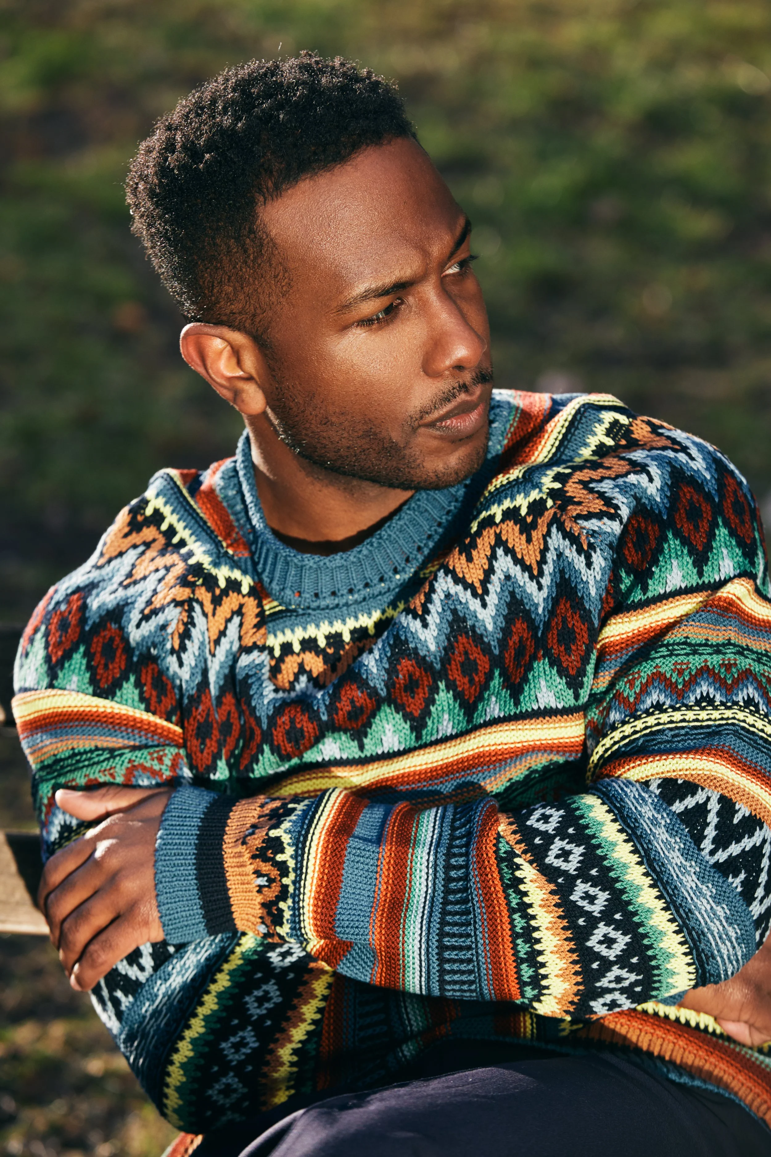 Sweater and Trousers by Teddy Vonranson; Shoes by Sebago; Trench Coat by Teddy Vonranson; Suit by Sandro Paris